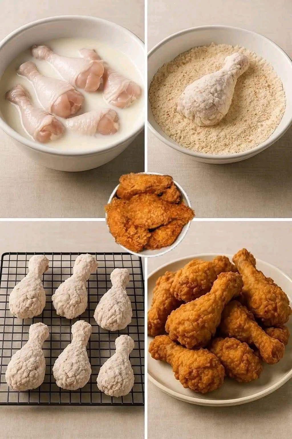 9. Check for Doneness: The chicken is done when it reaches an internal temperature of 165°F (74°C) when measured with an instant-read meat thermometer inserted into the thickest part of the drumstick, avoiding the bone. The coating should be deeply golden and very crispy.