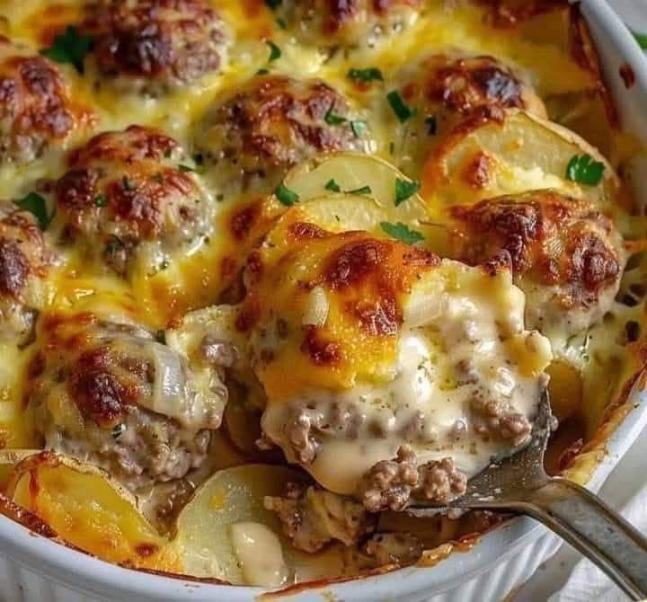 Of course! This is a classic, comforting dish that feels like a warm hug. The combination of savory meatballs, tender potatoes, and melted, bubbly cheese is simply irresistible.
