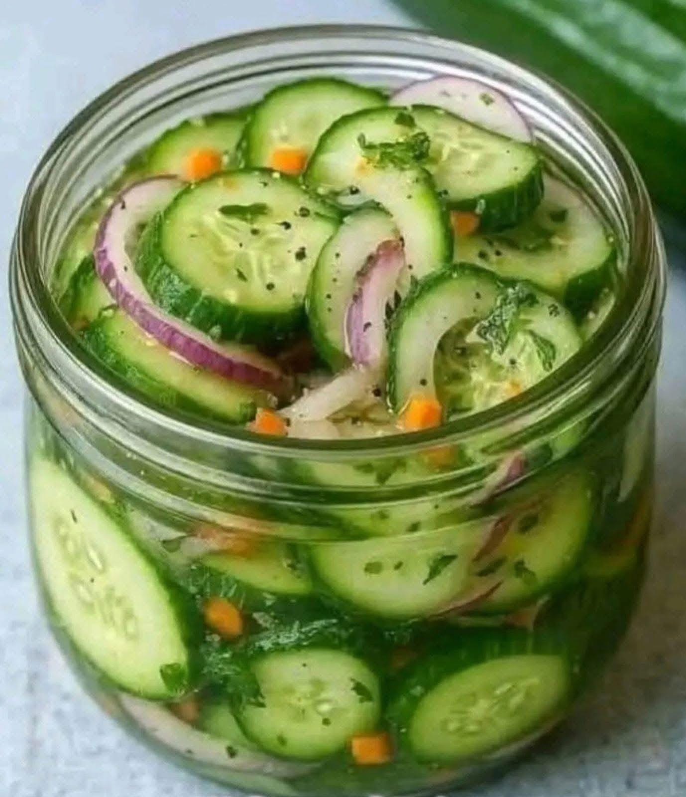 Homemade Pickled Cucumbers, Onions & Peppers