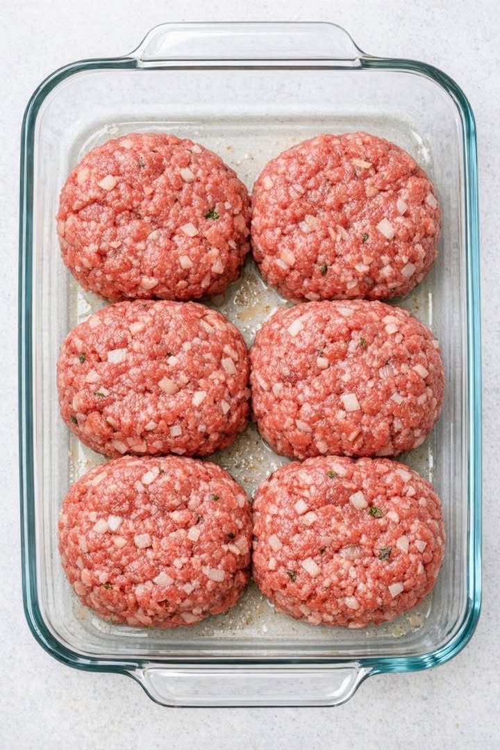 Throw raw ground beef patties in the glass casserole dish and 4 simple pantry staples to get a meal so amazing your family will be begging for more
